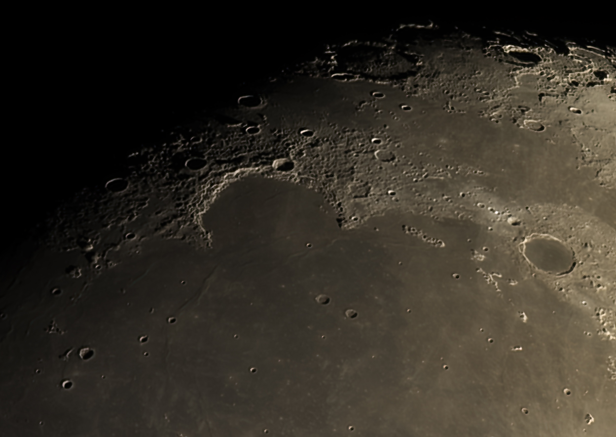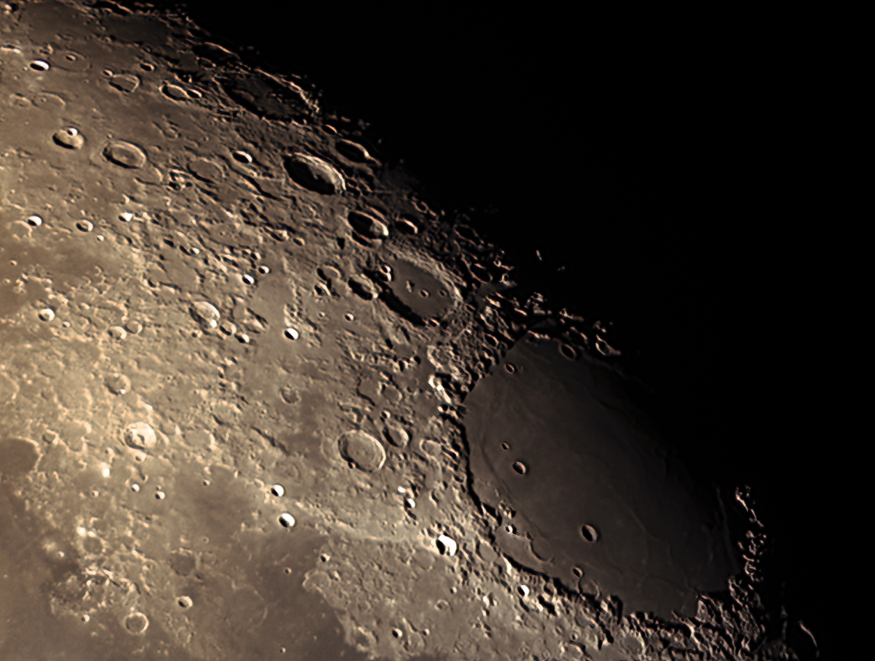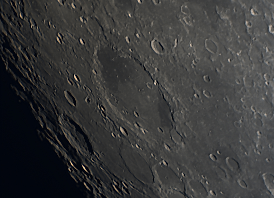 125 of 500 frames, stacked and processed using Wavelets in AstroSurface. Further processing using Photoshop CS3 and Topaz DenoiseAi. Shows a wide angle view of Mare Tranquilitatis.