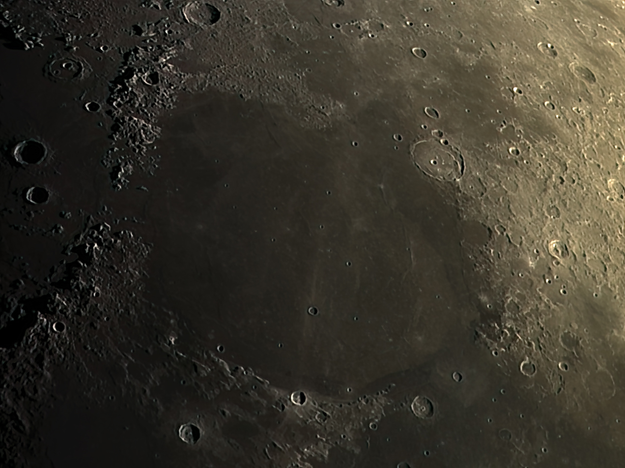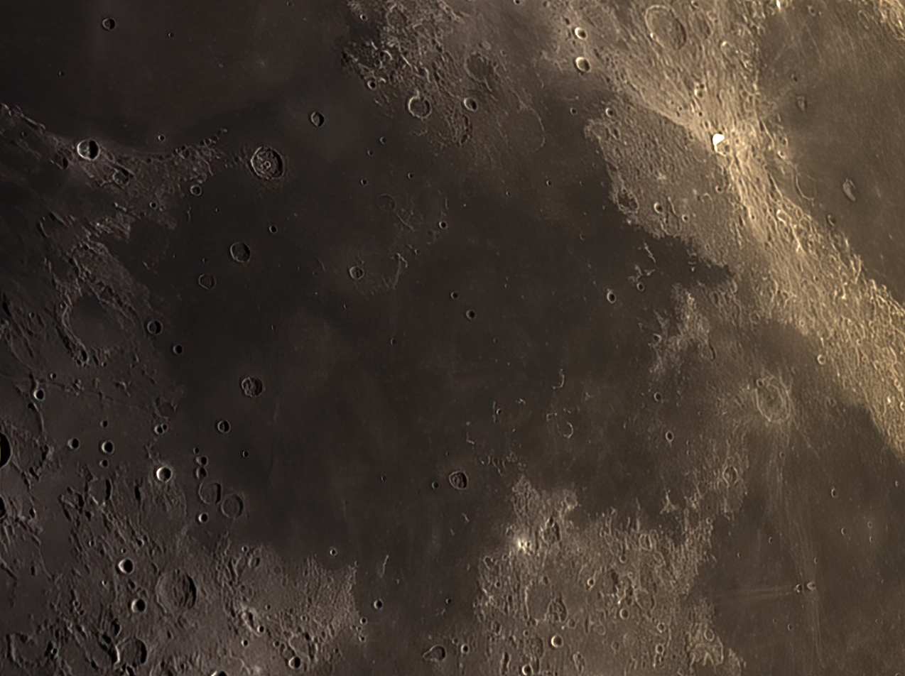 125 of 500 frames, stacked and processed using Wavelets in AstroSurface. Further processing using Photoshop CS3 and Topaz DenoiseAi. Shows a wide angle view of Mare Serenitatis.